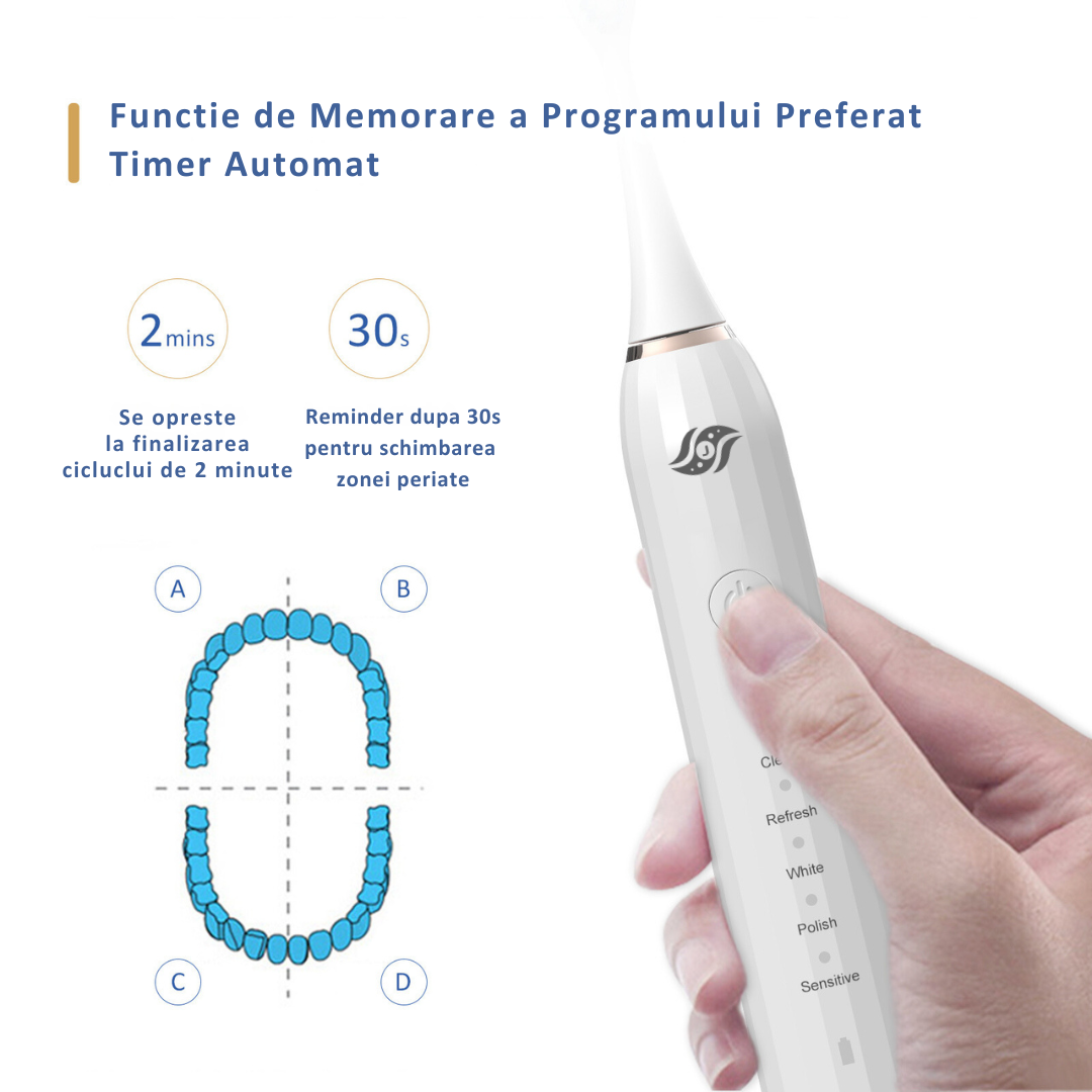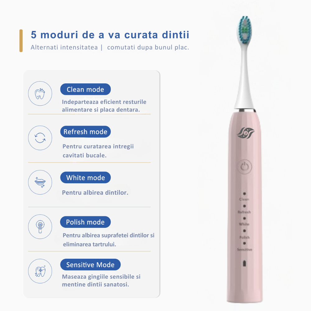 Cu cinci moduri de curatare adaptate nevoilor tale specifice, aceasta periuta de dinti redefineste eficienta si confortul.