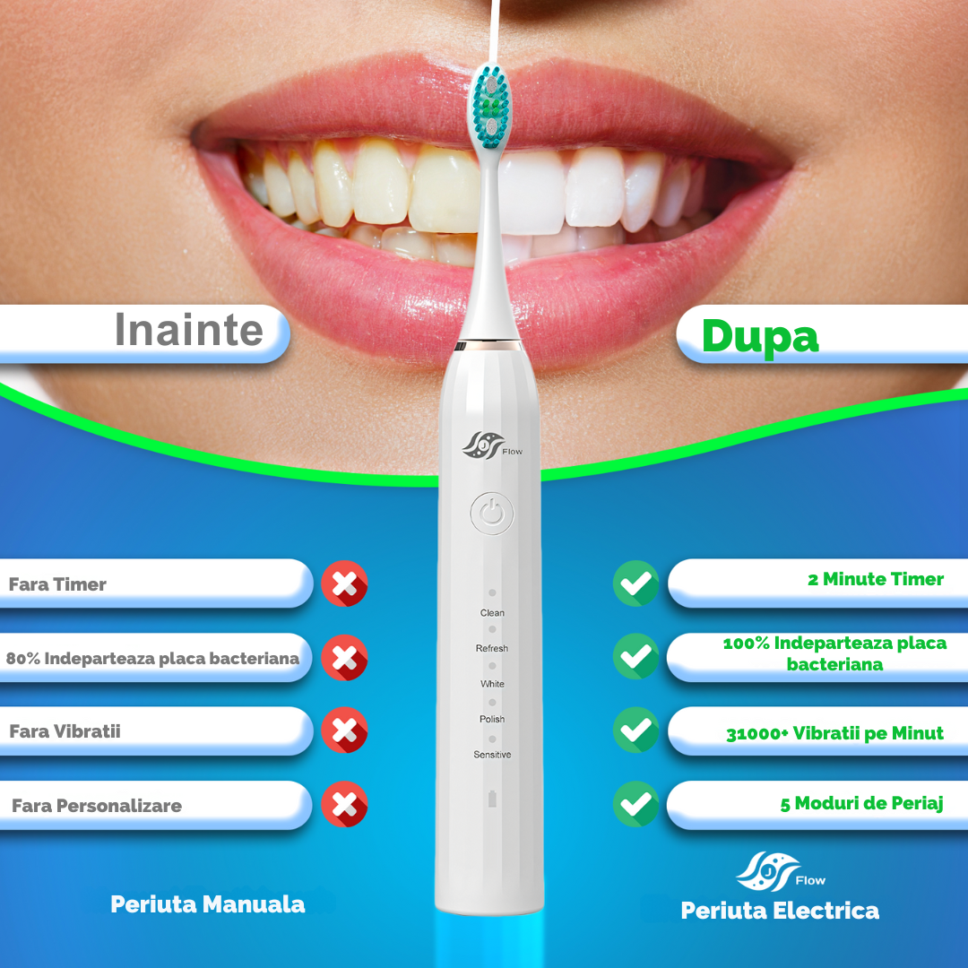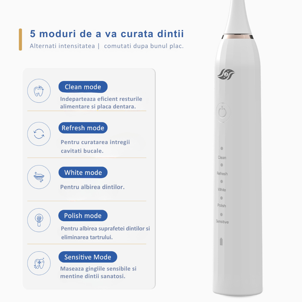 Cu cinci moduri de curatare adaptate nevoilor tale specifice, aceasta periuta de dinti redefineste eficienta si confortul.