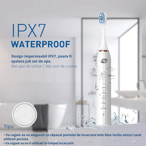 - Temporizator integrat: Asigura-te ca periezi timpul recomandat de 2 minute cu ajutorul temporizatorului nostru inteligent, care te avertizeaza la fiecare 30 de secunde pentru a schimba zona de curatare.