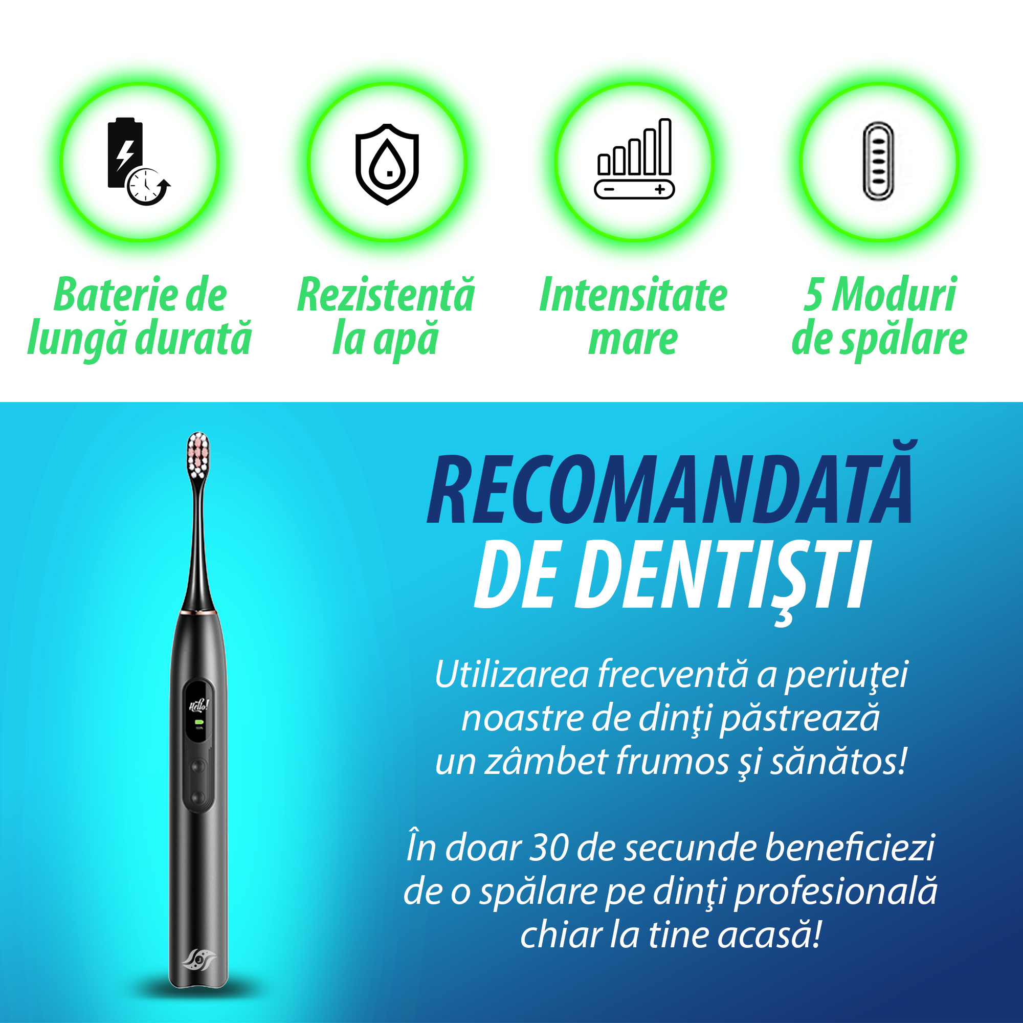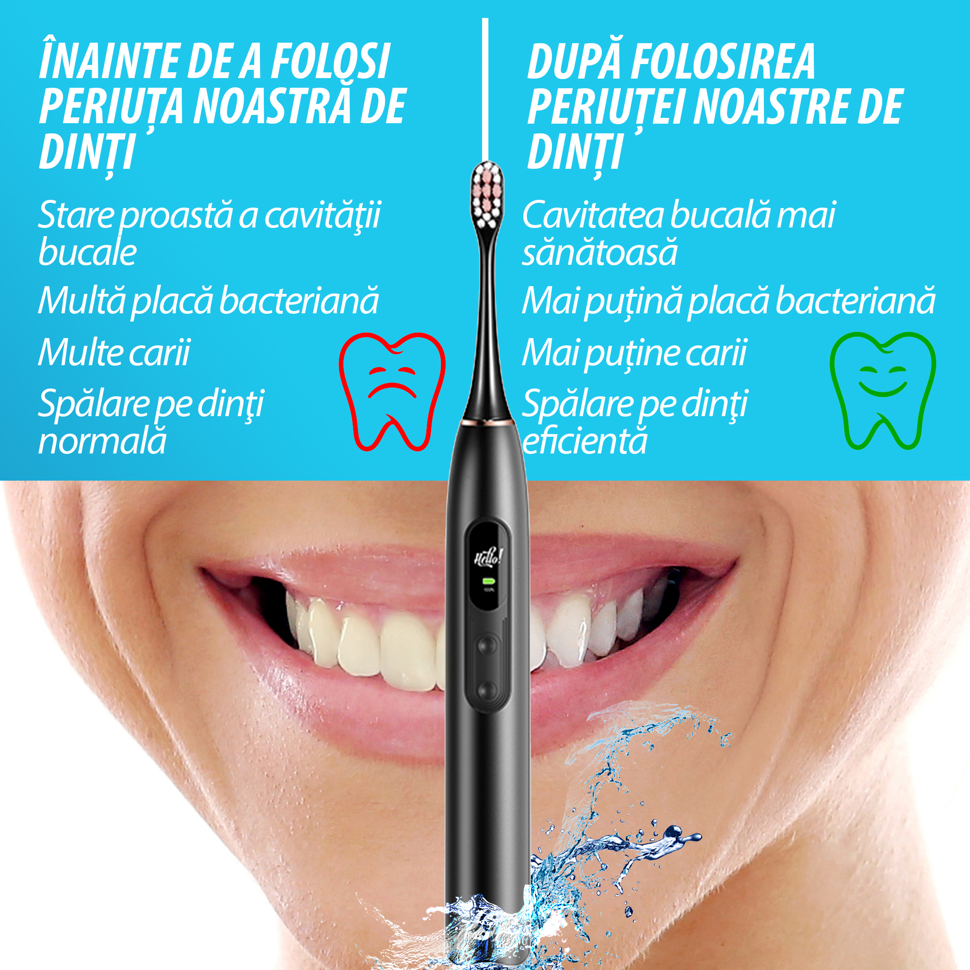 Transforma-ti rutina de igiena orala cu aceasta periuta de dinti sonica inteligenta, echipata cu tehnologie de ultima generatie!